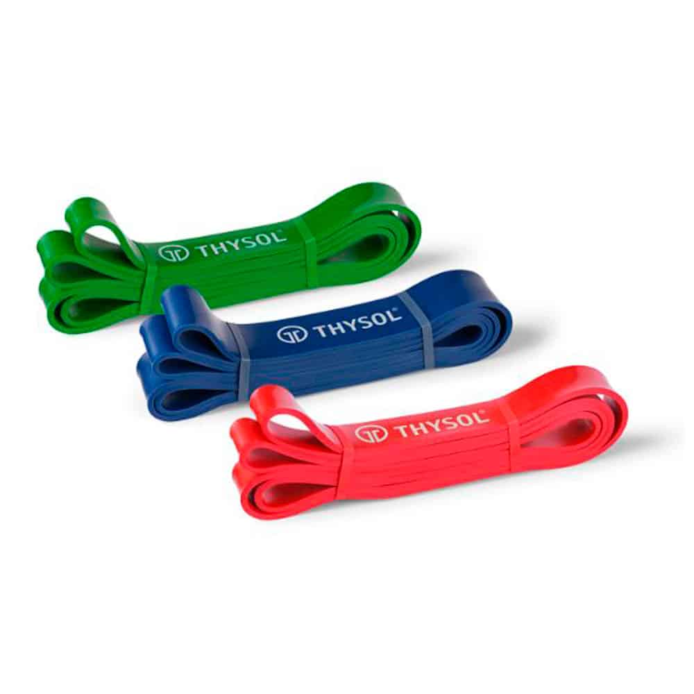 THYSOL Power Træningselastikker er de professionelle elastikker til seriøse atleter, crossfittere og styrketrænere, der vil have maksimal alsidighed i ét simpelt redskab. Med tre forskellige modstandsniveauer (7–55 kg) kan du bruge dem til alt fra pull-ups og tunge løft til mobilitet, genoptræning og funktionel træning. Let at tage med i tasken – stærk nok til at erstatte tungt udstyr.